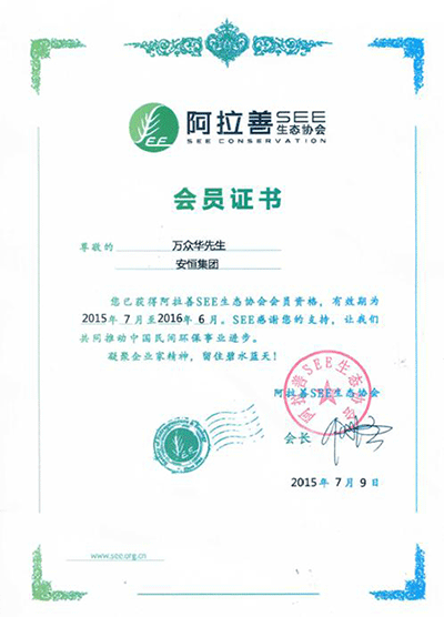 奉献环保公益事业 安恒集团董事长万众华加入阿拉善SEE生态协会