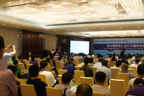 在本届城镇水务大会的“供水管网优化运行与漏损控制”论坛上,安恒集团副总裁王志军先生发表“智能压力控制在管网漏损控制中的应用”的精彩演讲,引得现场观众频频举手拍照并在结束时赢得全场持续热烈地掌声。王志军先生介绍到安恒集团深耕中国水务行业多年,深刻了解行业的现状和未来发展趋势,适时地融入“互联网+”的潮流中,创新地提出“水联网®——互联网+智慧化精细水管理”理念,此理念在实践中显现出巨大的成果,特别是基于水联网®理念的LeakView®管网漏损控制解决方案。并将安恒集团水联网技术服务中心LeakView®供水管网漏损管理系统的应用方案、智能压力控制解决方案以及在老旧小区、经济开发区、城中村等供水管网综合应用成功案例逐一呈献给与会嘉宾。