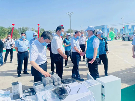 安恒员工在向巴州州长巴图,自治区环保厅党委书记戴吾军讲解产品
