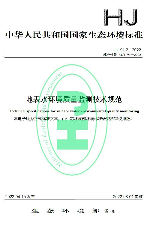 HJ91.2-2022地表水环境质量监测技术规范将于2022年8月1日正式实施!